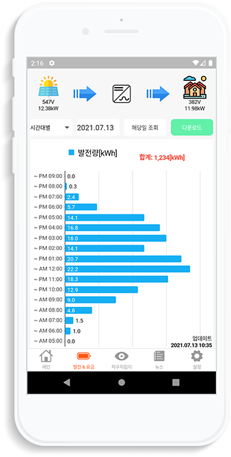 계신 장소나 시간에 관계없이 발전정보를 확인하실 수 있습니다.
