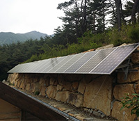 햇빛을 직접 전기로 바꾸어 주는 태양전지판을 건물의 지붕이나 옥상, 마당 등에 설치하여